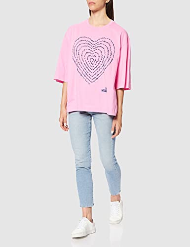 Love Moschino Loose Fit t-Shirt Wide Elbow-Length Sleeves with a Calligram 3-D Heart Print And Logo, Colore: Rosa, 52 Donna