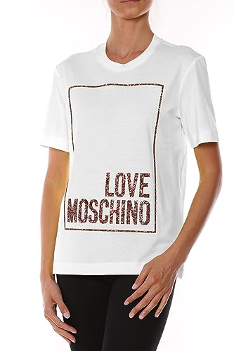 Love Moschino Maglietta in Cotone Jersey 3D Multicolore con Brillantini T-Shirt, Bianco, 50 Donna
