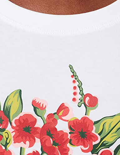 Love Moschino Maglietta a Maniche Corte in Jersey di Cotone Elasticizzato. con Stampa Floreale Personalizzata e Logo T-Shirt, Bianco, 46 Donna