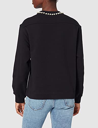 Love Moschino Oversize Hooded Sweatshirt with Dropped Sleeves,Stitched Yoke in Back,Pearl Trim Around The Neckline Maglia di Tuta, Nero, 50 Donna