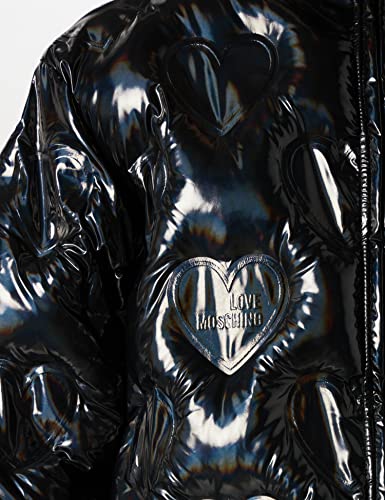 Love Moschino Long Padded Jacket in Logo Thermo Quilted Nylon with Hood Giacca, Nero, 50 Donna
