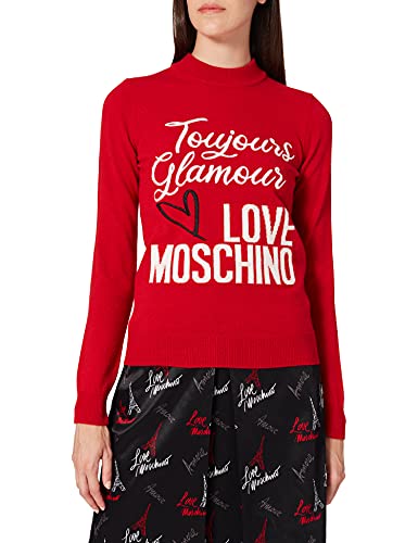 Love Moschino Regular Fit Turtleneck Pullover Long Sleeve with Embroidered Slogan And Logo Intarsia in Front Felpa, Colore: Rosso, 48 Donna