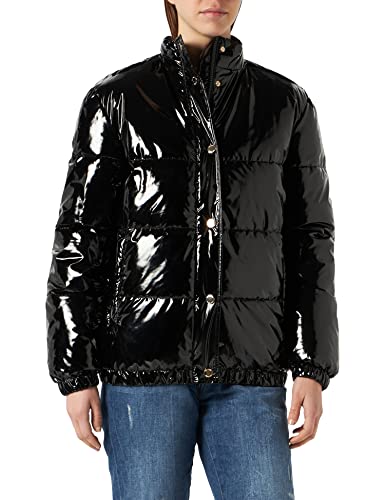 Love Moschino Shiny Coated Nylon Padded Jacket with Mini Hearts Allover Lining Giacca, Nero, 44 Donna
