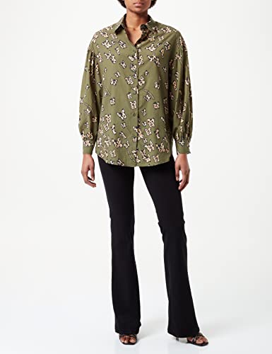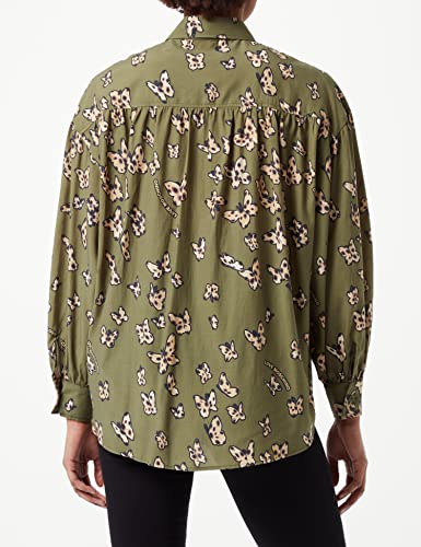 Love Moschino Shirt Printed Allover Animalier Butterflies Camicia, Colore: Verde, 50 Donna