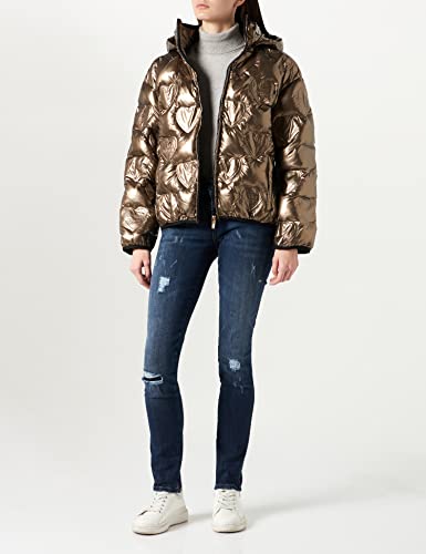 Love Moschino Short Padded Jacket in Logo Thermo Quilted Nylon with Detachable Hood Giacca, Marrone, 52 Donna
