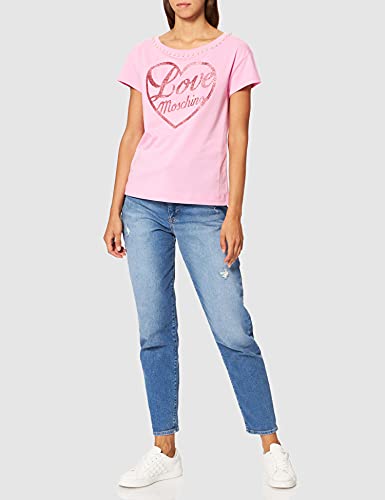 Love Moschino Boxy Fit Short Sleeved t-Shirt,Trimmed with Pearls on Along The Neckline, Colore: Rosa, 50 Donna