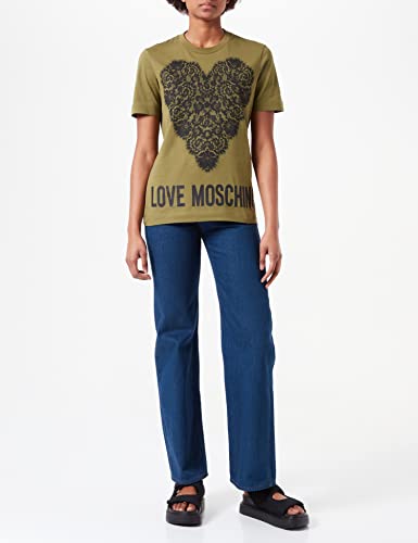 Love Moschino T-Shirt with Maxi Lace Heart And Logo Print Donna, Verde, 44