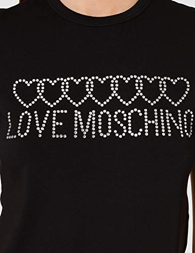 Love Moschino Slim Fit T-Shirt Short-Sleeves, Personalised with Crystal Seasonal Logo Application, Black, 44 Donna