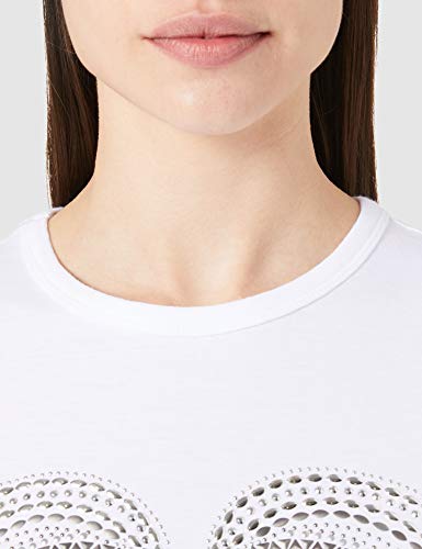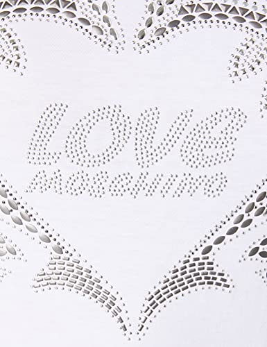 Love Moschino Slim Fit T-Shirt Short-Sleeves, Personalised with Dolphins And Logo hotfix 3D Silver Studs, Optical White, 42 Donna