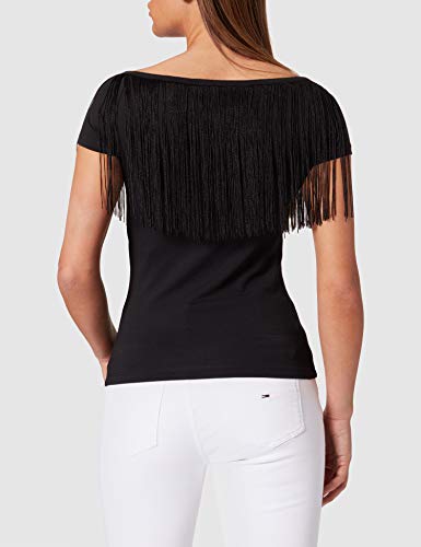 Love Moschino Tight Fitting T-Shirt Short Sleeves And Bardot Neckline with Fringes, Black, 44 Donna
