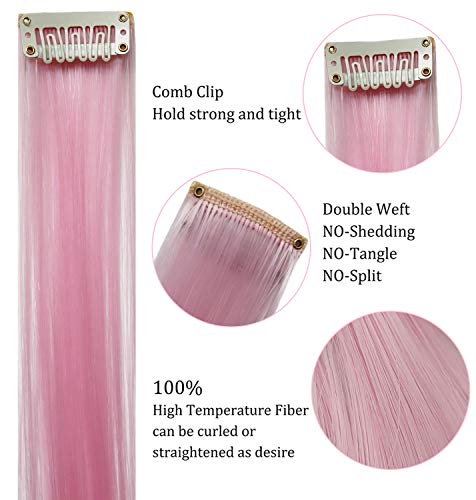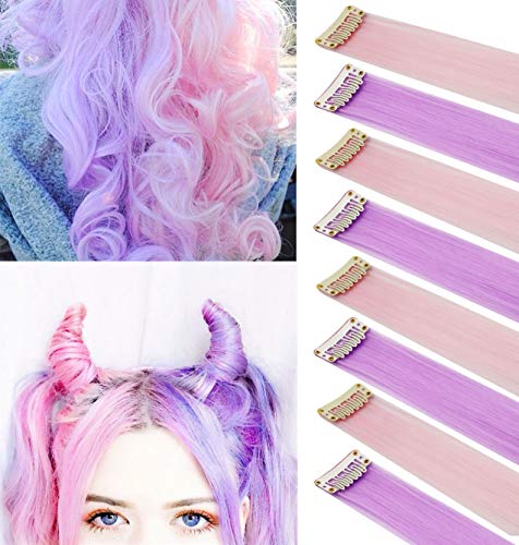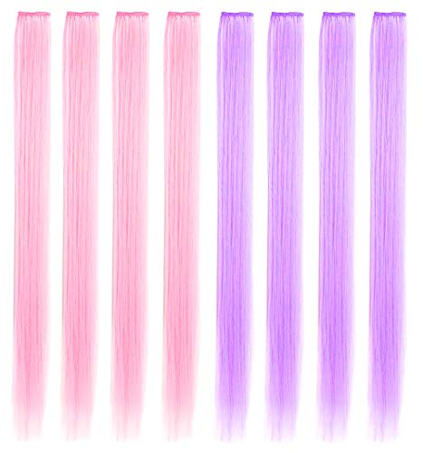 MOSCSMDY 8PCS Set 21''Light Pink&Light Purple Colored Hair Extensions for Girls Clip in Wig Pieces for Teens Colorful Hair Pieces Multiple Colors