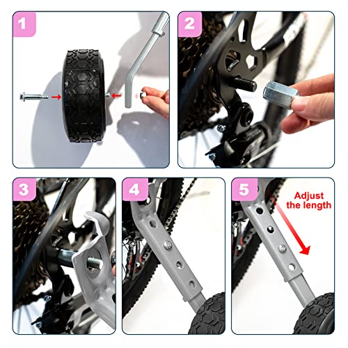 Questo set di robusti stabilizzatori per ruote posteriori aiuta i giovani studenti a guidare la bicicletta fino a quando non hanno sviluppato un senso utile di equilibrio sulla bicicletta
