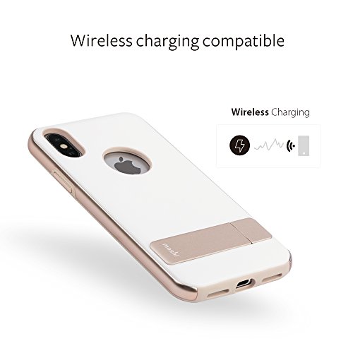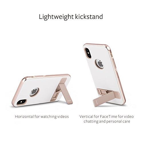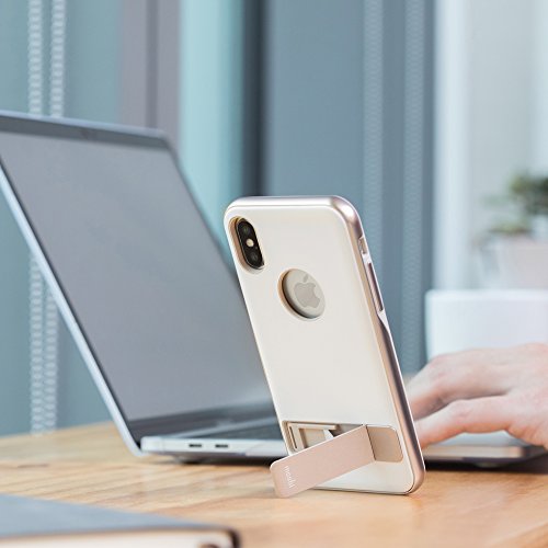 Moshi Kameleon - Custodia protettiva per iPhone XS/iPhone X da 5,8", con cavalletto, lunetta rialzata, colore: Bianco avorio