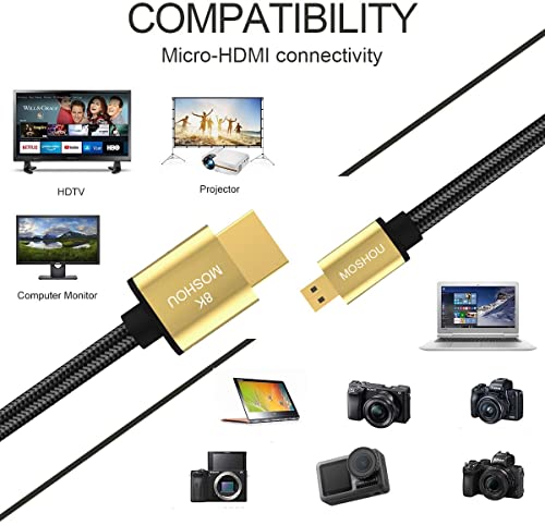 MOSHOU Cavo Micro HDMI a HDMI Ultra High Speed 8K@60Hz, 4K/2K/1080P@120Hz Micro HDMI 2.1 con Ethernet per GoPro, Sony, Nikon, Canon, Fotocamera, Tablet, Cavo di collegamento per laptop (3 m)