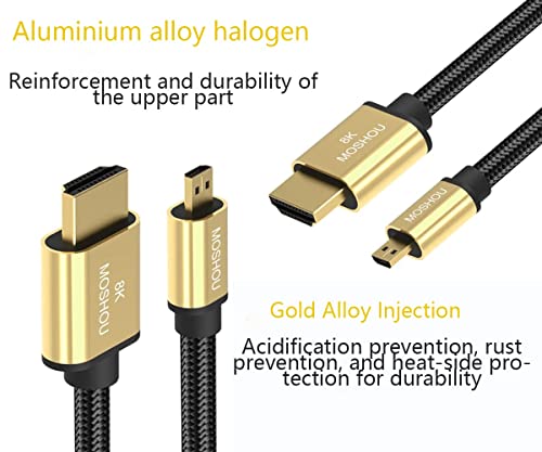 Filo argentato: il cavo MOSHOU Micro HDMI 2.1 utilizza una tecnologia placcata in argento per garantire una trasmissione efficiente del segnale. Non c'è bisogno di preoccuparsi della perdita di segnale o delle immagini sfocate. Una custodia in nylon intrecciato di alta qualità offre la massima protezione per il cavo stesso.