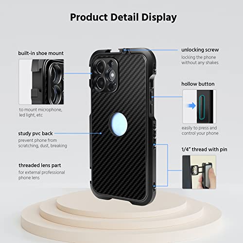 【Progettata per iPhone 13 Pro Max】Questa gabbia video per telefono è progettata per iPhone 13 Pro Max, connessione senza soluzione di continuità tramite precisione CNC, offre una protezione eccellente, senza interruzioni o scatti durante le riprese. Questa è una grande attrezzatura per il cinema del telefono, le riprese video, il record di vlog, lo streaming live, la fotografia o altre scene.