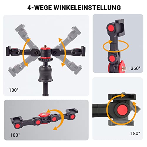 【Barra allungabile multifunzionale】Il supporto girevole a doppia scarpa fredda viene fornito con un doppio supporto per scarpa, è un piccolo accessorio ideale per collegare due dispositivi al treppiede del telefono cellulare, alle fotocamere DSLR, come luci LED, microfoni e altri accessori per scarpe fredde.