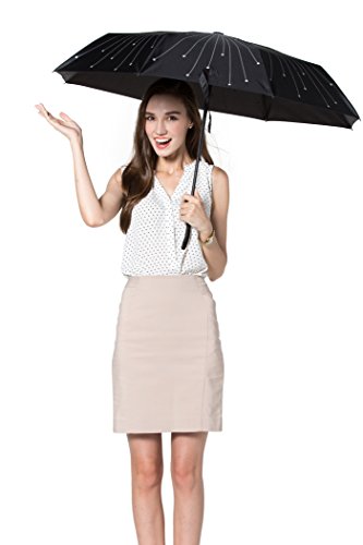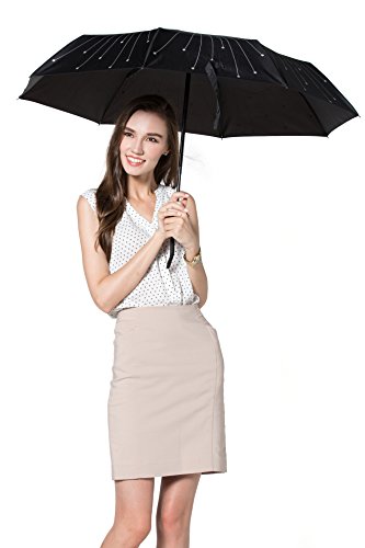 Mosiso - Ombrello pieghevole, a prova di acqua e vento, resistente, impermeabile, automatico, unisex, regalo ideale nero