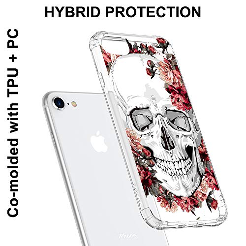 MOSNOVO Clear Cover iPhone 7 / iPhone 8 / iPhone SE (2020) / iPhone SE (2022) / iPhone SE 3, Assorbimento degli Urti, Custodia Sottile TPU paraurti in Copertura del Telefono -Teschio floreale