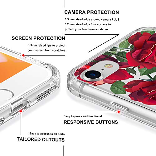 MOSNOVO Clear Cover iPhone 7 / iPhone 8 / iPhone SE (2020) / iPhone SE (2022) / iPhone SE 3, Assorbimento degli Urti, Custodia Sottile TPU paraurti in Copertura del Telefono -Rose rosse