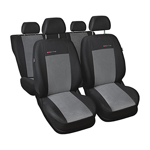 Realizzati in tessuto di tappezzeria nelle parti laterali del coprisedile e in velours con disegno nella parte centrale. I materiali sono laminati con schiuma poliuretanica e fodera. Decorazione con ricamo ELEGANCE. Il set e composto di fodere coordinate, confezionate su misura in modo professionale (l'aderenza nel 100%). Le fodere sono munite di sistemi pratici grazie ai quali la funzionalita dei sedili non diminuisce.