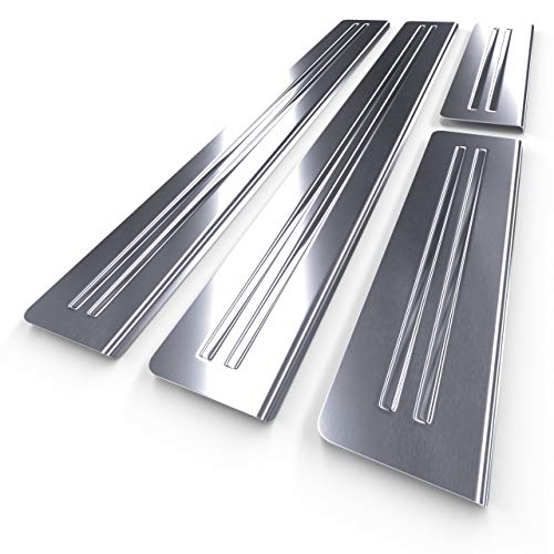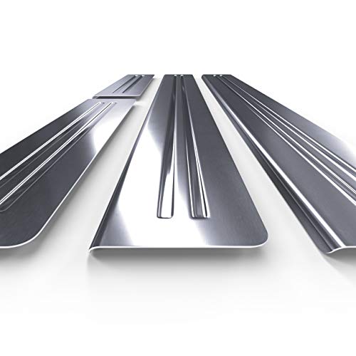 I battitacco sono fabbricati in acciaio inossidabile. Colore: argento. Finitura della superficie: satinatura parziale della superficie, incavi lucidi. Adattamento ideale. Il prodotto svolge una funzione decorativa e di protezione della soglia contro danni esterni (ad esempio quando si sale in auto) e contro la corrosione. Incollati con nastro biadesivo resistente alle intemperie.