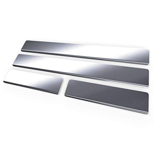 I battitacco sono fabbricati in acciaio inossidabile. Colore: Argento. Finitura della superficie: Opaco - levigatura direzionale di tutta la superficie. Adattamento ideale. Il prodotto svolge una funzione decorativa e di protezione della soglia contro danni esterni (ad esempio quando si sale in auto) e contro la corrosione. Incollati con nastro biadesivo resistente alle intemperie.