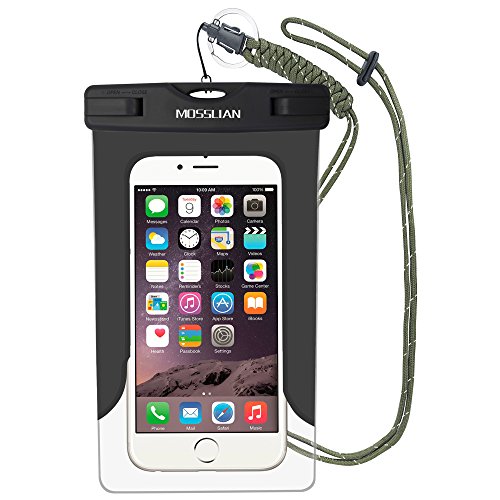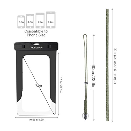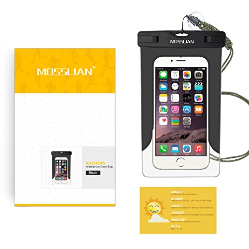 MOSSLIAN 6" Custodia Impermeabile Universale per Telefono Cellulare Piscina Nuoto Drift Surf Sci Pesca Immersioni ecc sport acquatici / iPhone 6s Plus, iPhone 6, Asus ZenFone 2, Samsung Note 2 3 4 (Nero (W/O band))