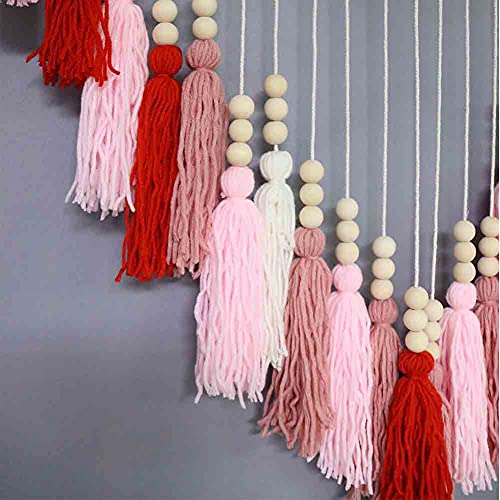 Mossuo, ghirlanda con nappe color arcobaleno, con perline di legno colorate per la camera da letto, la stanza dei bambini, la decorazione per la festa del compleanno del bambino (rosso-rosa)