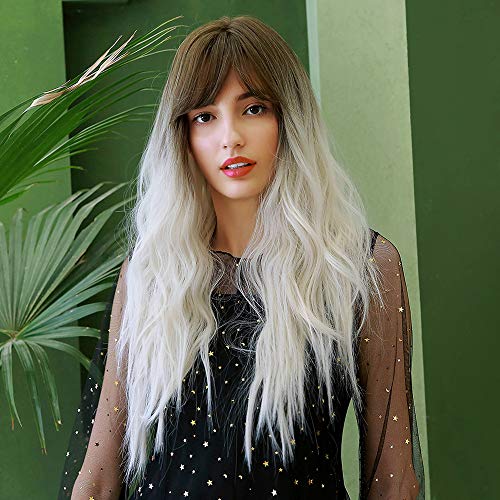 Mostfar - Parrucca sintetica ondulata naturale da marrone a platino, resistente al calore, per donne alla moda, per cosplay, feste in maschera o uso quotidiano, 75 cm (frangia laterale)