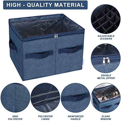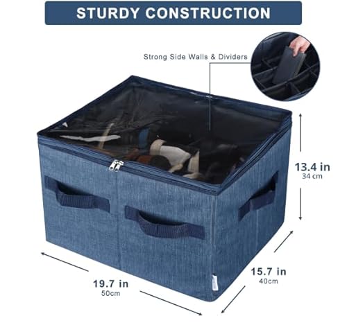 Moteph Organizer per scarpe da armadio, con copertura trasparente e divisori regolabili per scarpe, borse, coperte, biancheria e abbigliamento (M, 16 paia, blu navy)