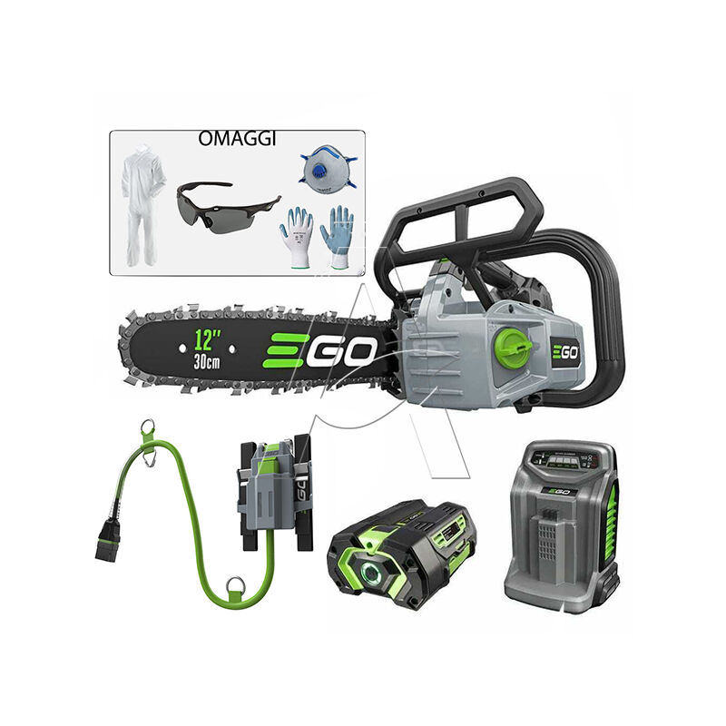 SPEDIZIONE GRATUITA E ASSICURATA Potenza, prestazioni e design migliori della categoria. La motosega da potatura CSX3000 EGO Power+ Professional-X e' progettata per offrire un attrezzo specialistico per arboricoltori professionisti, che possono affrontare le sfide del lavoro quotidiano. EgoPower Plus presenta la rivoluzionaria motosega a batteria che fornisce la potenza di una motosega a benzina senza nessun rumore, e sgradevoli odori dovuti alla combustione del carburante. Il Kit comprende Motosega CSX3000 (Art. 053880) Caricabatteria rapido (Art. 028113) Batteria 4 Ah (Art. 028103) Kit Motesega CSX3002 a Batteria EgoPower+ Completo di Batteria al litio e Caricabatteria rapido - EgoPower Plus Tutta la potenza di una motosega a benzina da 35,2 cc in una compatta e leggera motosega a batteria! Dotata di una catena aggressiva e da una barra da 30 cm, questa motosega compatta ben bilanciata con custodia per batteria leggera inclusa permette di affrontare le sfide cui ci si trova