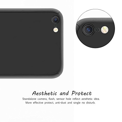 Mothca iPhone 7 Custodia,Full Body Ultra Sottile PC Difficile Cover Case Vetro Temperato Proteggi Schermo 3 in 1 Design Front Cover&Indietro Caso&Vetro Film Lusso Protezione Completa(Nero)