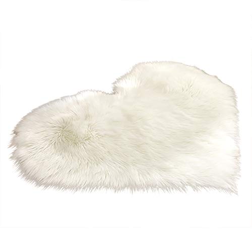 Mothcattl - Tappeto in peluche a forma di cuore, antiscivolo, per camera da letto, decorazione per la casa, colore: Bianco
