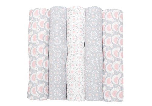 Motherhood Oeko-Tex Standard Set di 5 Panni Multiuso - 3 Panni di Tetra + 2 Panni di Molletone, Colore Bianco/Grigio (Oiseaux poudre et gris)