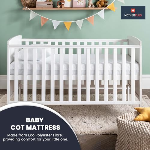 MotherPlus Materasso trapuntato in poliestere ecologico ipoallergenico impermeabile per neonati e bambini (120 x 60 x 10 cm), solido