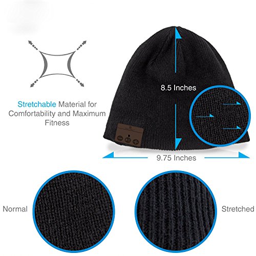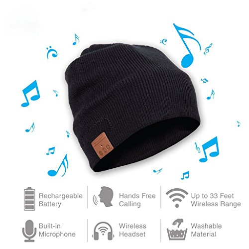 Motionjoy Berretto Bluetooth, Premium Invernali all aperto Knit Cap con Cuffia Stereo Senza Fili Auricolare Microfono Mani libere per iPhone Samsung Cellulari Android, migliori regali di Natale Anno nuovo (Nero)