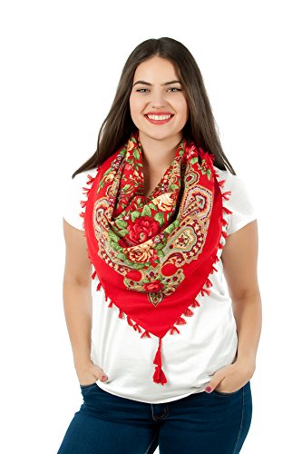 Folk, motivo floreale, stile Vintage-Sciarpa/scialle new Spring Collection rosso