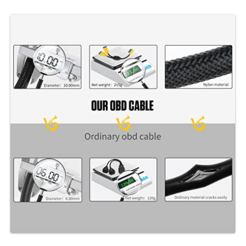 Da uno a due: questo cavo può essere utilizzato per 2 dispositivi contemporaneamente, interfaccia standard OBD, resistente al collegamento, la trasmissione a lungo termine è ancora stabile come prima.