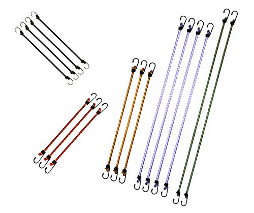 Multifunzione: questo set di funi elastiche è composto da 16 corde in gomma con ganci in colori assortiti;