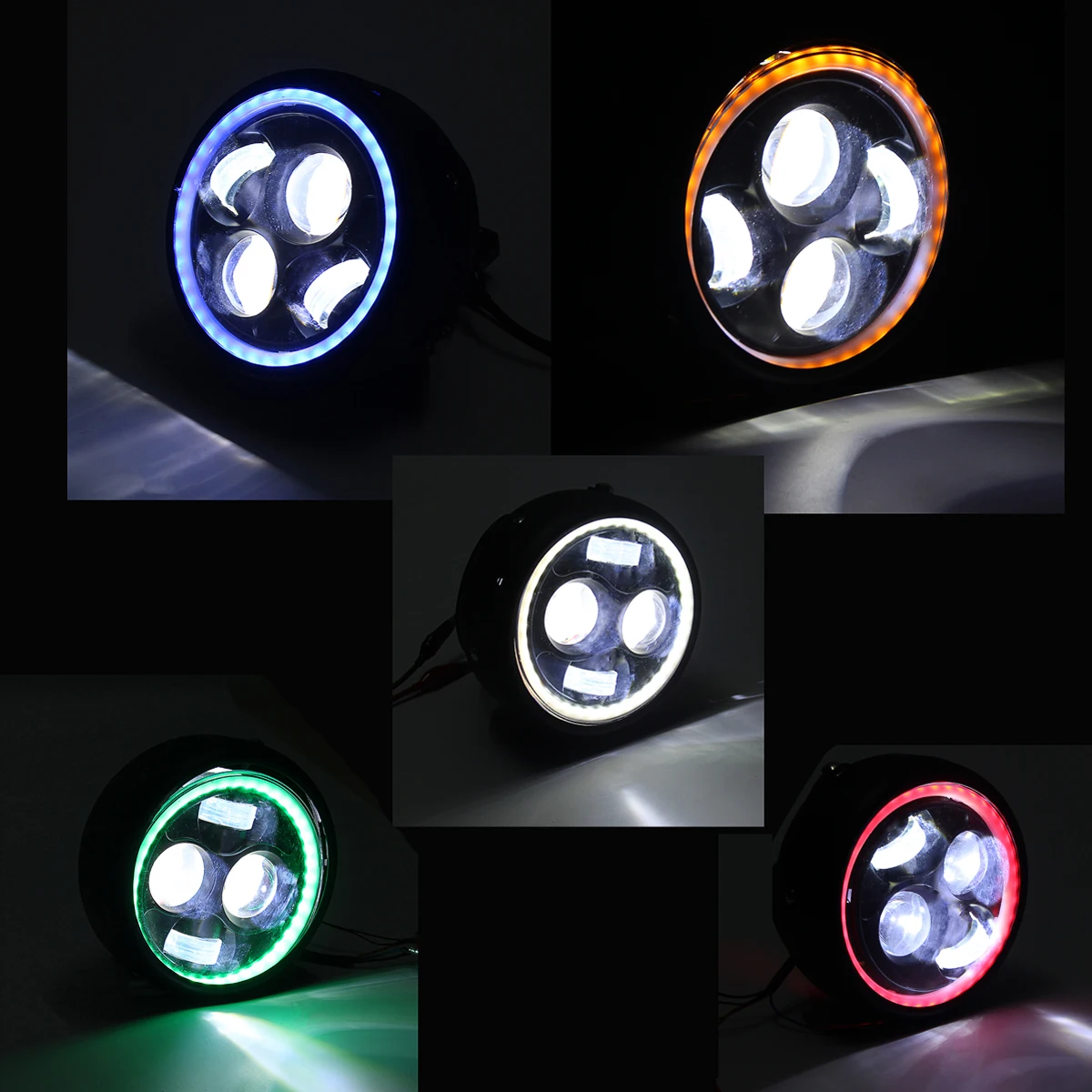 1pcs Motorcycle LED Angel Eye High Low Beam Headlight Lamp Universal Front Light Cafe Racer without Brackets