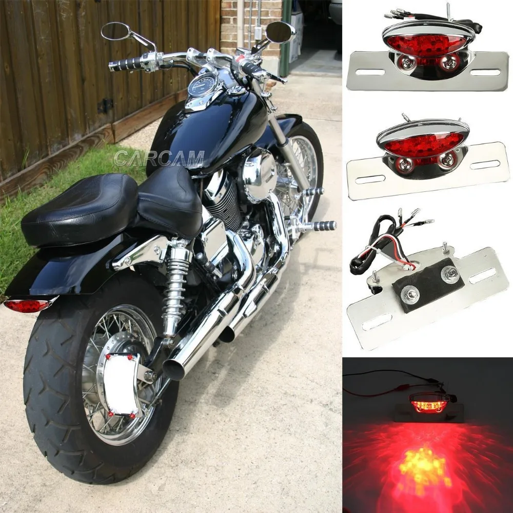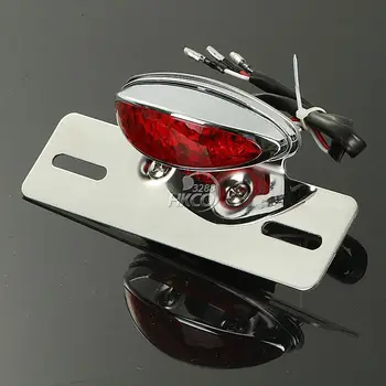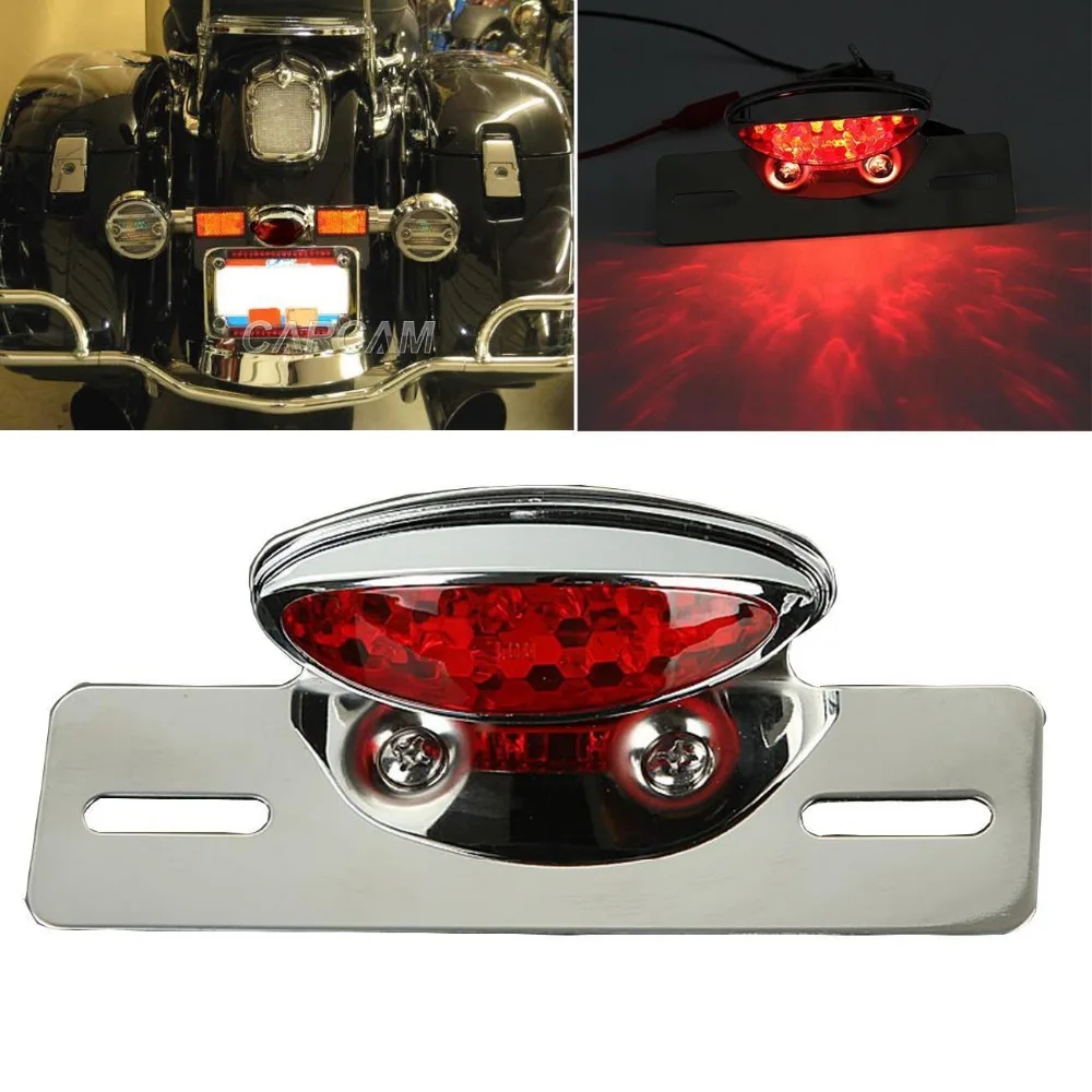 Motorcycle Chrome Integrated LED Light Tail Brake License Plate Mount Holder