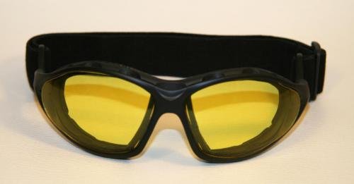 Motorcycle goggles black, yellow-tinted lenses, black frame, SBR rubber by Qubeat