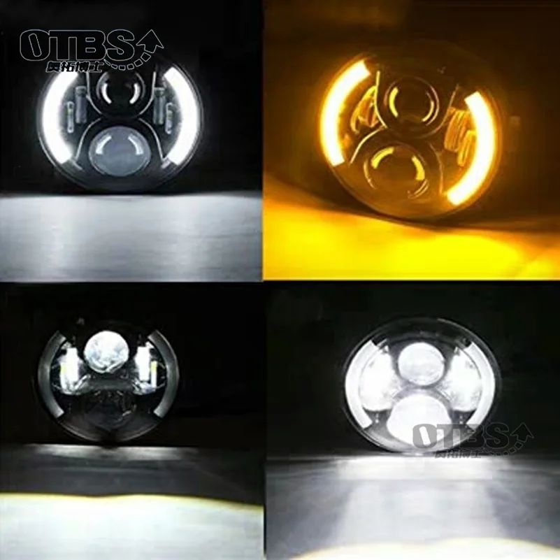 1 Set 7 Inch 60W DOT SAE E9 Motorcycle Headlamp with angle eye Led Headlight 7inch housing bucket trim ring