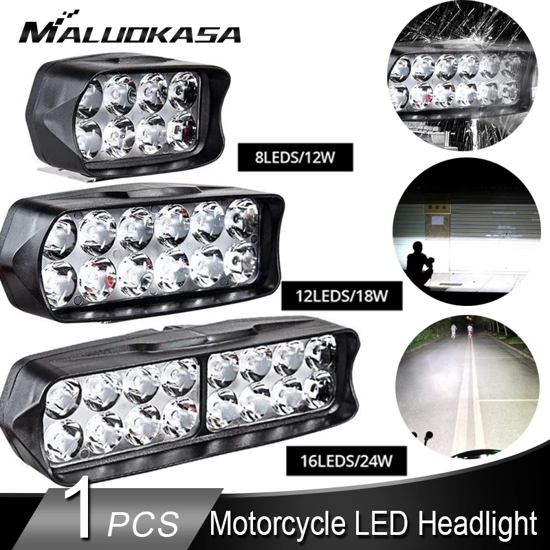 Motorcycle LED Headlight Bright 8 12 16 LED Spot Headlight for Motorcycle 12 18 24W Moto Headlamp Spotlight Motorcycle Accessory