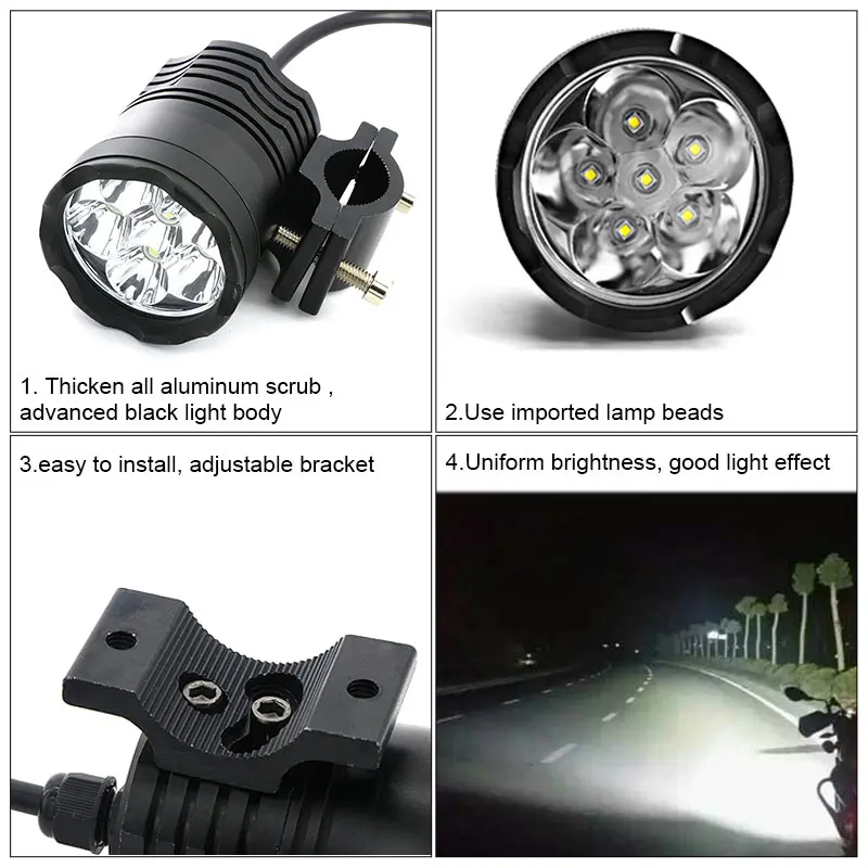 Plug&play 60W Motorcycle Headlight spotlight 9600lm/set 6000k auxiliary LED lights Fog light CNC machined Aluminium Housing