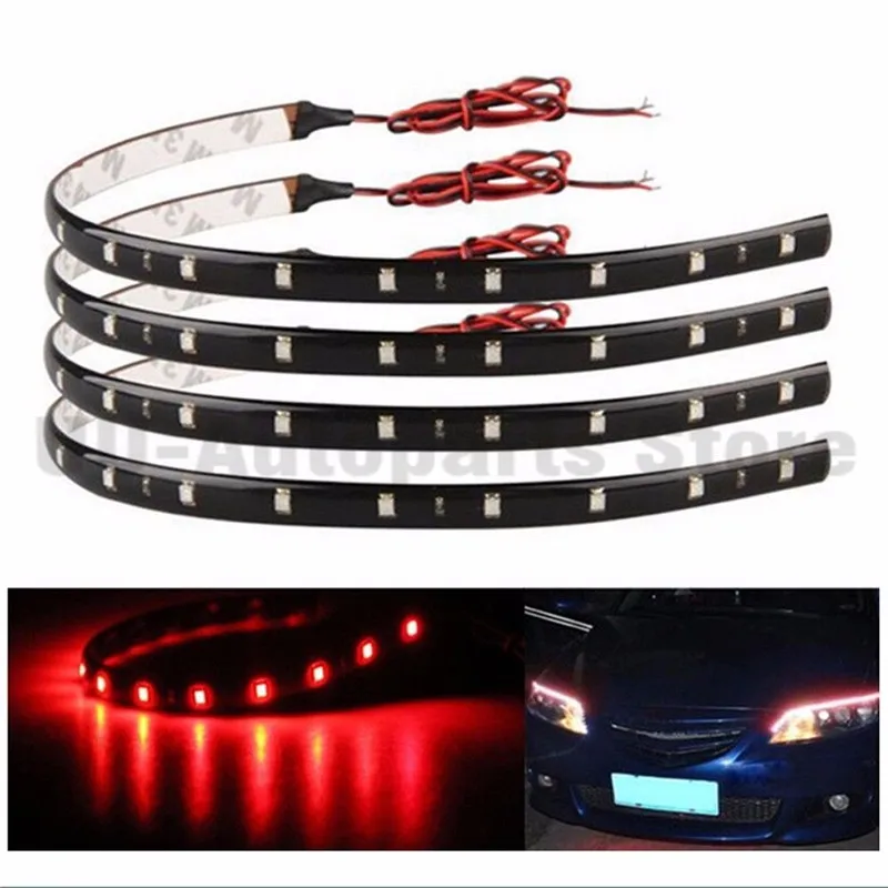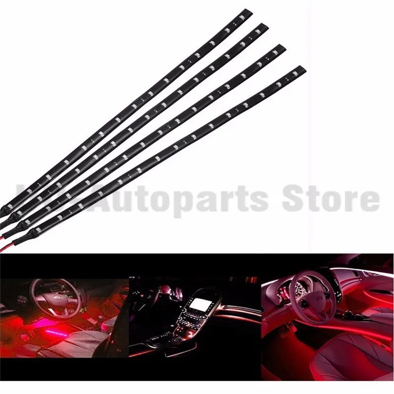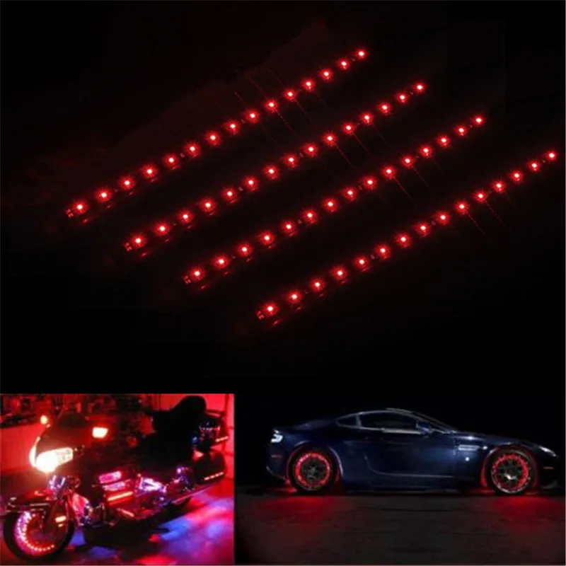 Motorcycle 4PCS 30CM Red LED Light Universal Wireless Remote Control Flexible Strips Decoration Atmosphere Light
