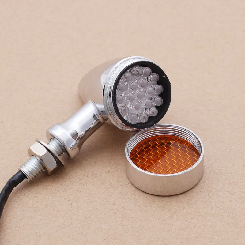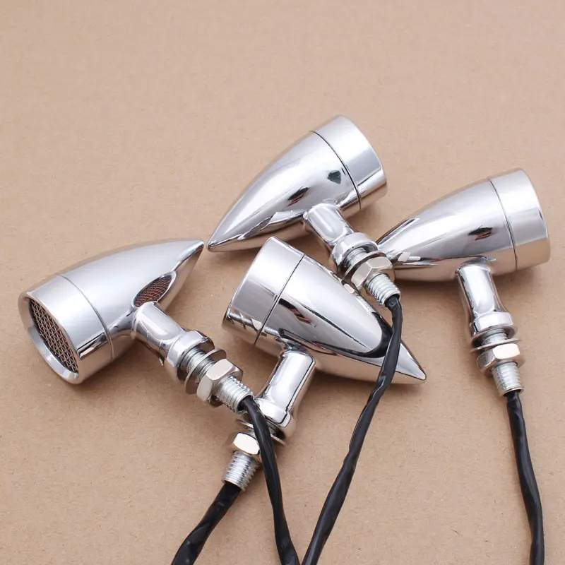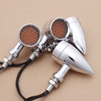 4Pcs Motorcycle Grid Retro Chrome Aluminum Turn Signal Light Indicators LED Brake Light 10mm Universal for Triumph Honda Yamaha