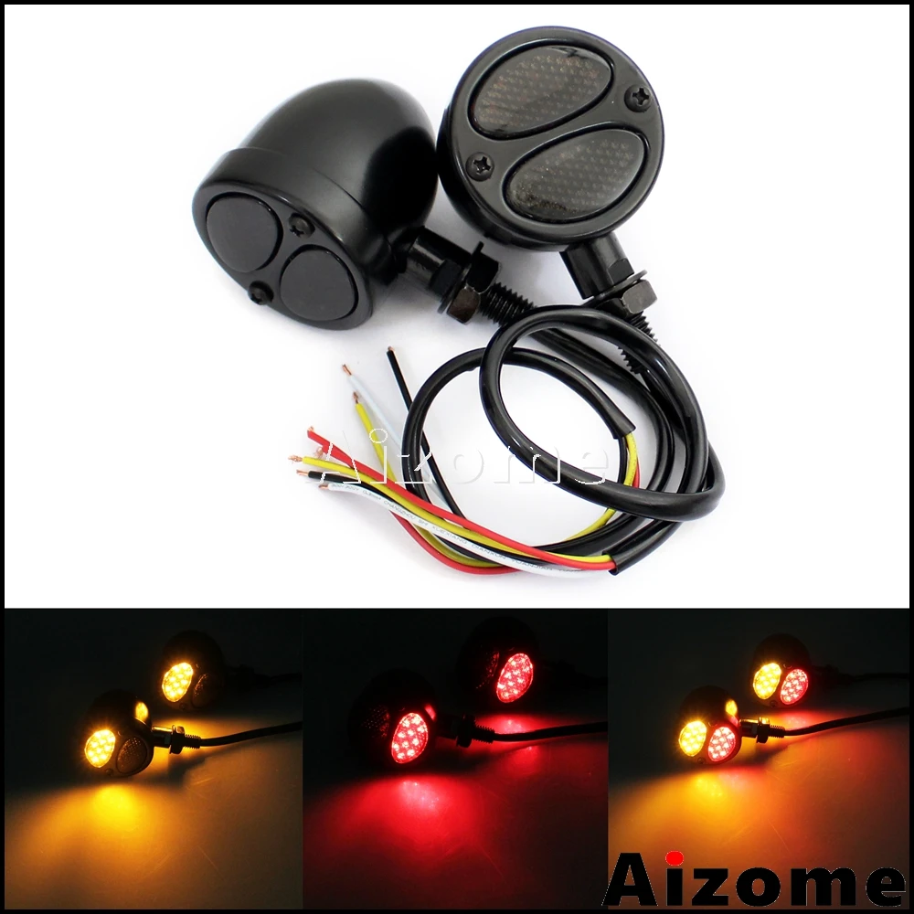 Motorcycle 3 in 1 LED Turn Signals w/ Brake Tail Light Front Rear Indicator Lights Blinkers For Harley Chopper Bobber Cafe Racer
