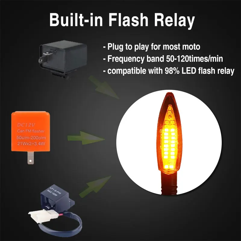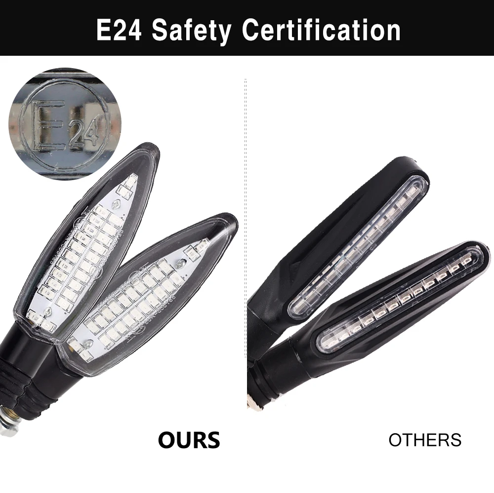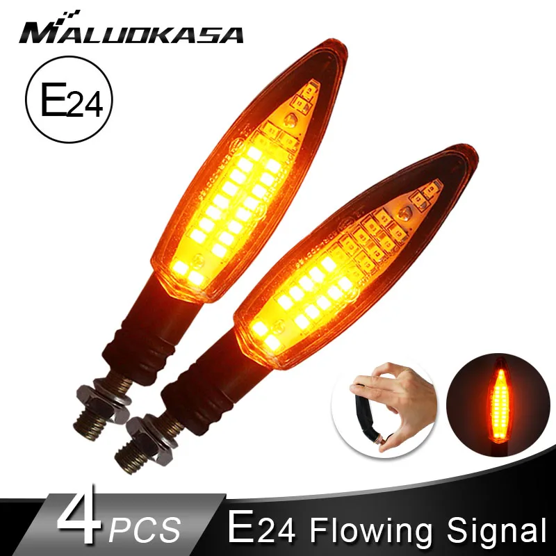 4PCS Motorcycle Turn Signals Light E24 Built Relay Flowing Water Flashing 24LED Blinker Bendable Tail Stop Signal Blinker